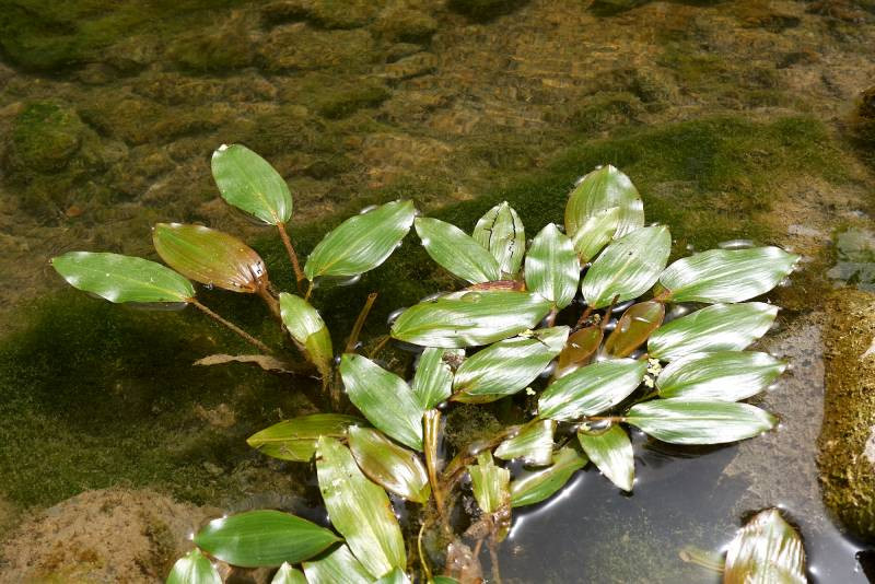 Pour une installation dans un bassin ou un ruisseau naturel vous pouvez simplement faire un trou dans la vase et planter votre potamogeton directement dedans en prenant soin d’enlever le godet en plastique.